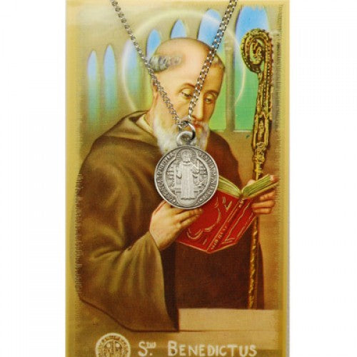 Discover spiritual strength with our St. Benedict Prayer Card Set. This beautifully crafted set includes a 5/8-inch Pewter Medal on a 24-inch Nickel Chain and a laminated prayer card, perfect for daily devotion or as a thoughtful gift. The powerful intercession of St. Benedict, known for his protection against evil and his commitment to prayer, can inspire and uplift your faith journey.