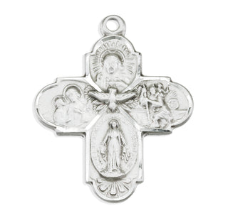 1 1/8-inch Sterling Silver 4-Way Medal with 24-inch Chain