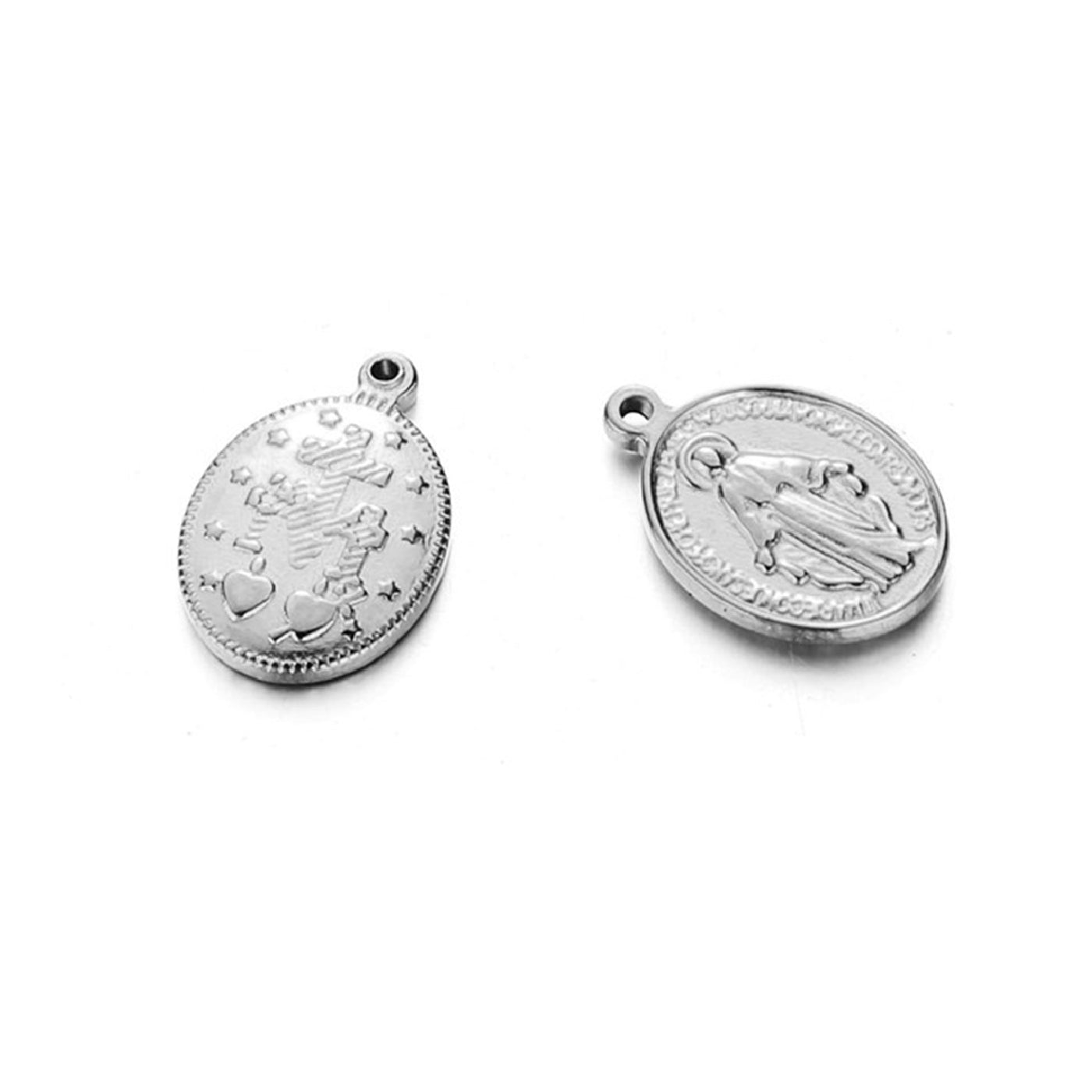 The Miraculous Medal itself measures 3/4-inch tall by 1/2-inch wide (19 mm x 13mm). The included Stainless Steel chain features a sturdy lobster-claw clasp.