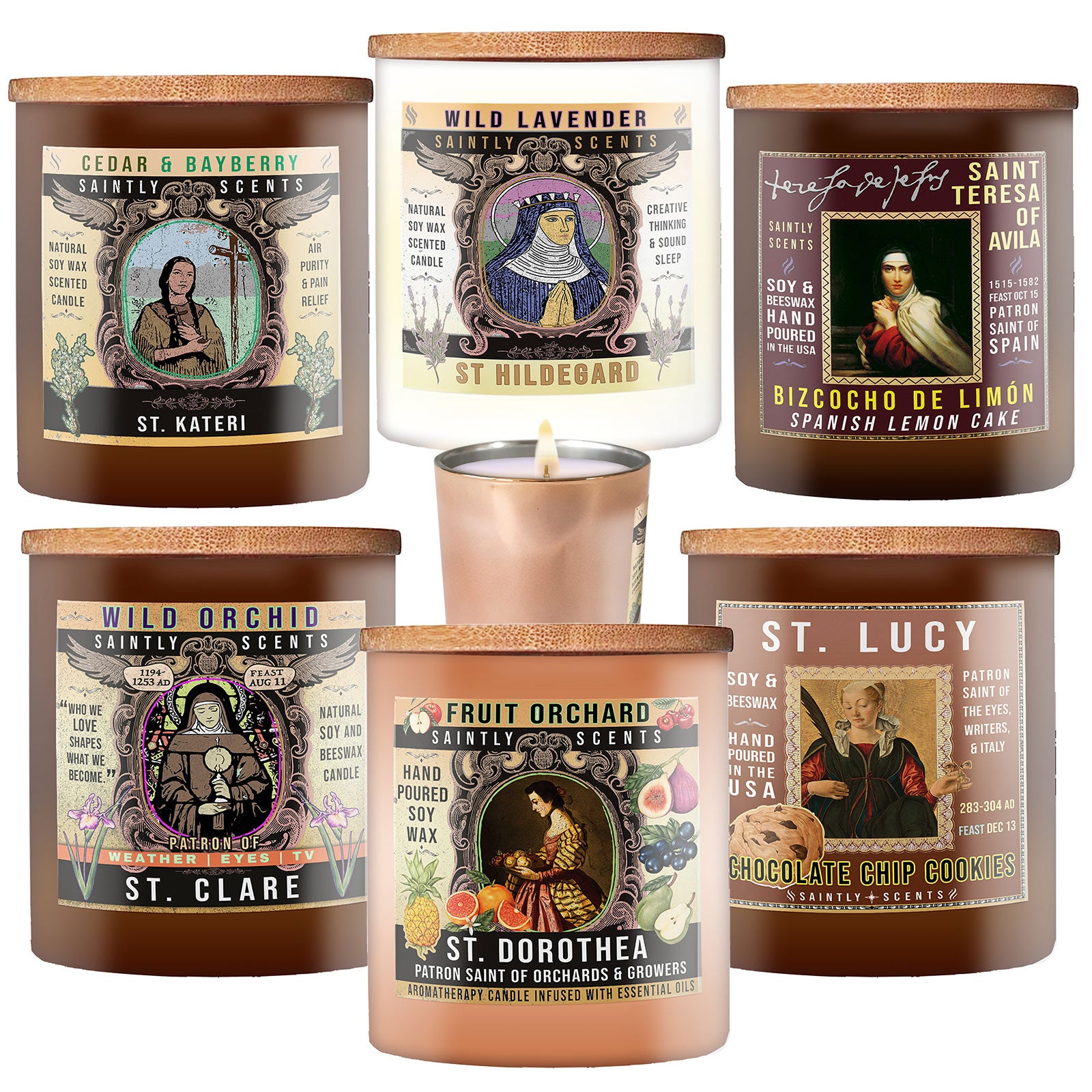 Our Saintly Women Variety Set features six of handmade scented candles by Saintly Scents at an amazing price. This delicious-smelling variety set includes Free Shipping and features candles dedicated to some of the most beloved female saints in history, with scents matching their histories. An inspiring gift set for women!