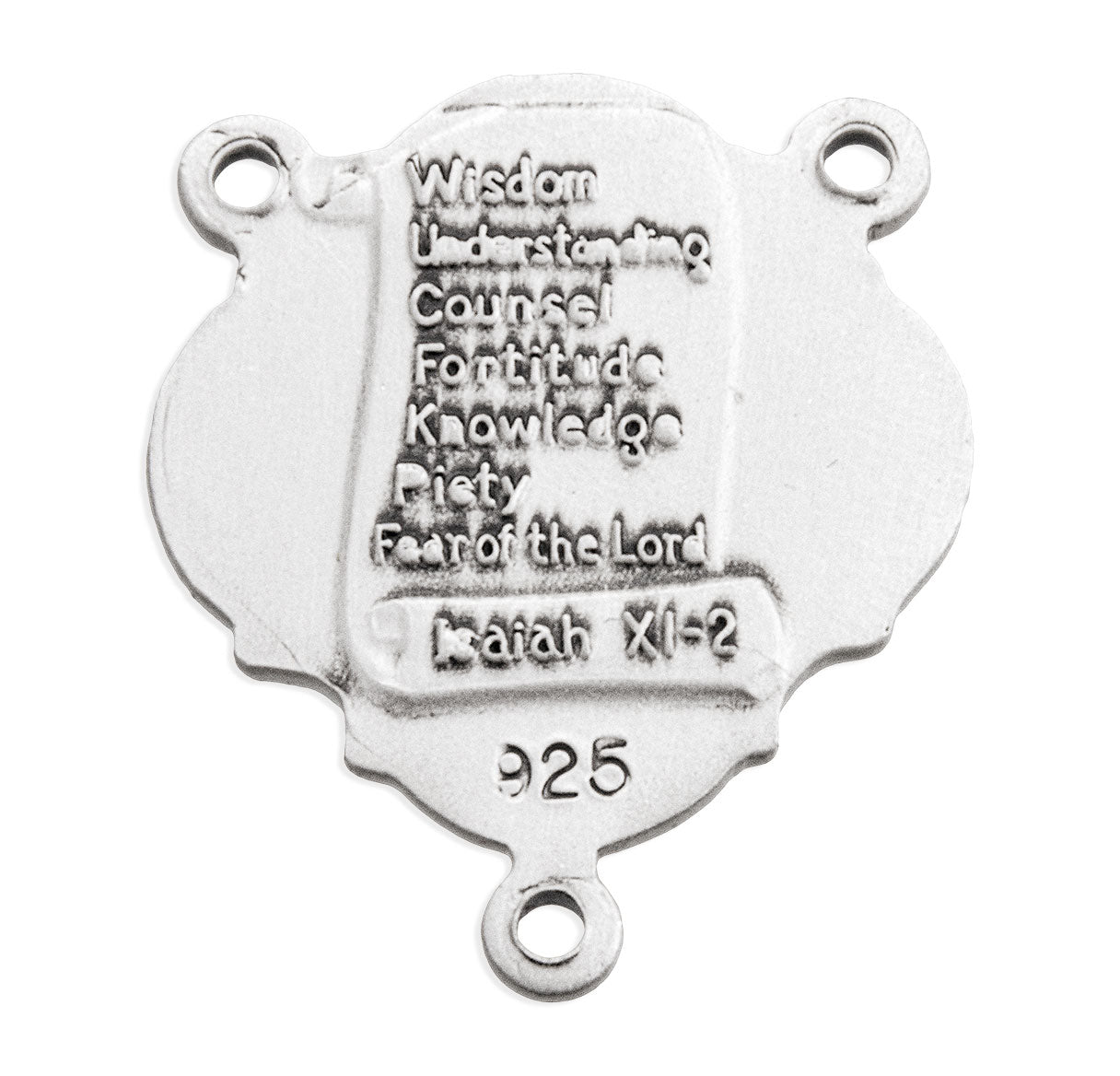 3/4-inch Sterling Silver Holy Spirit 7 Gifts Confirmation Rosary Center. Item Comes Carded.