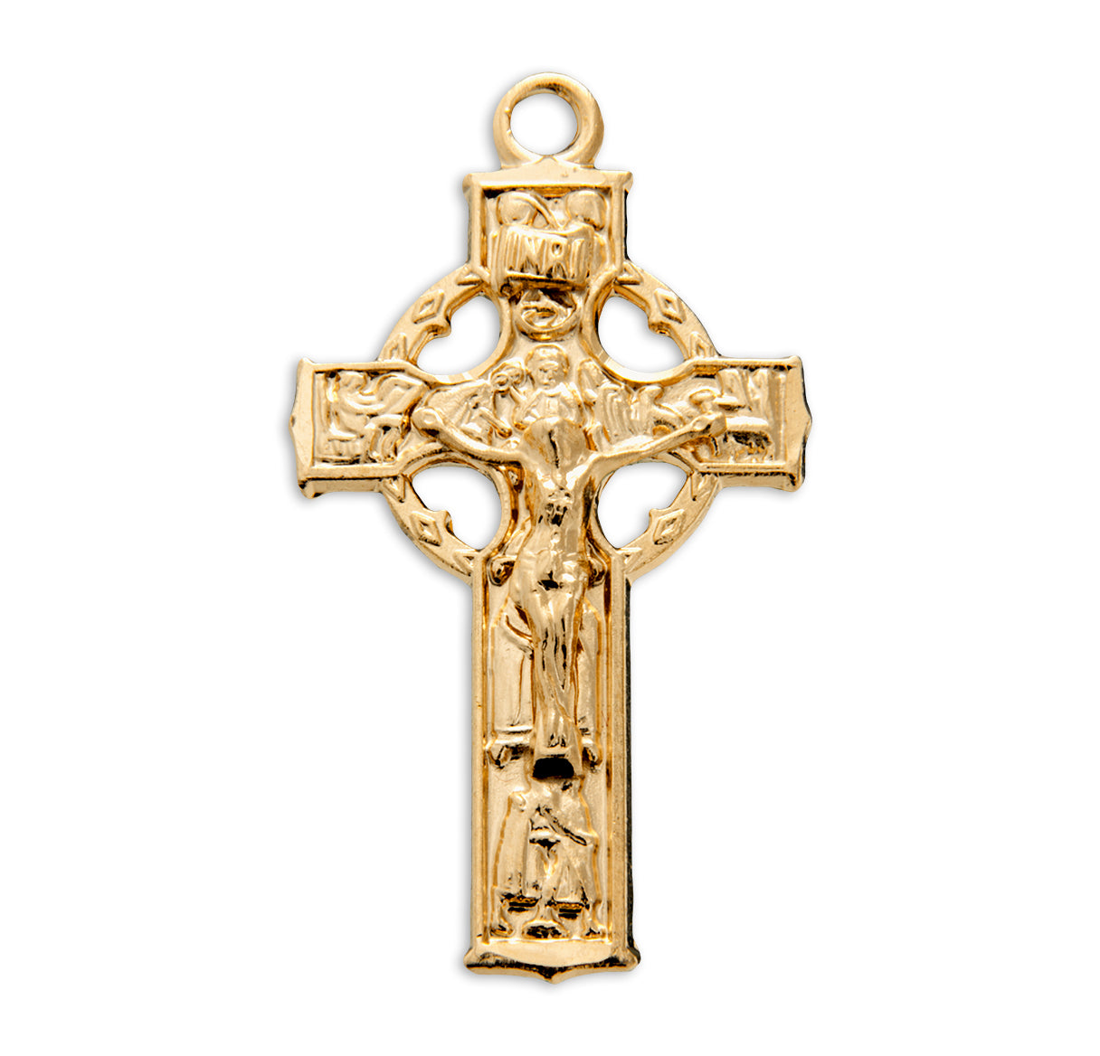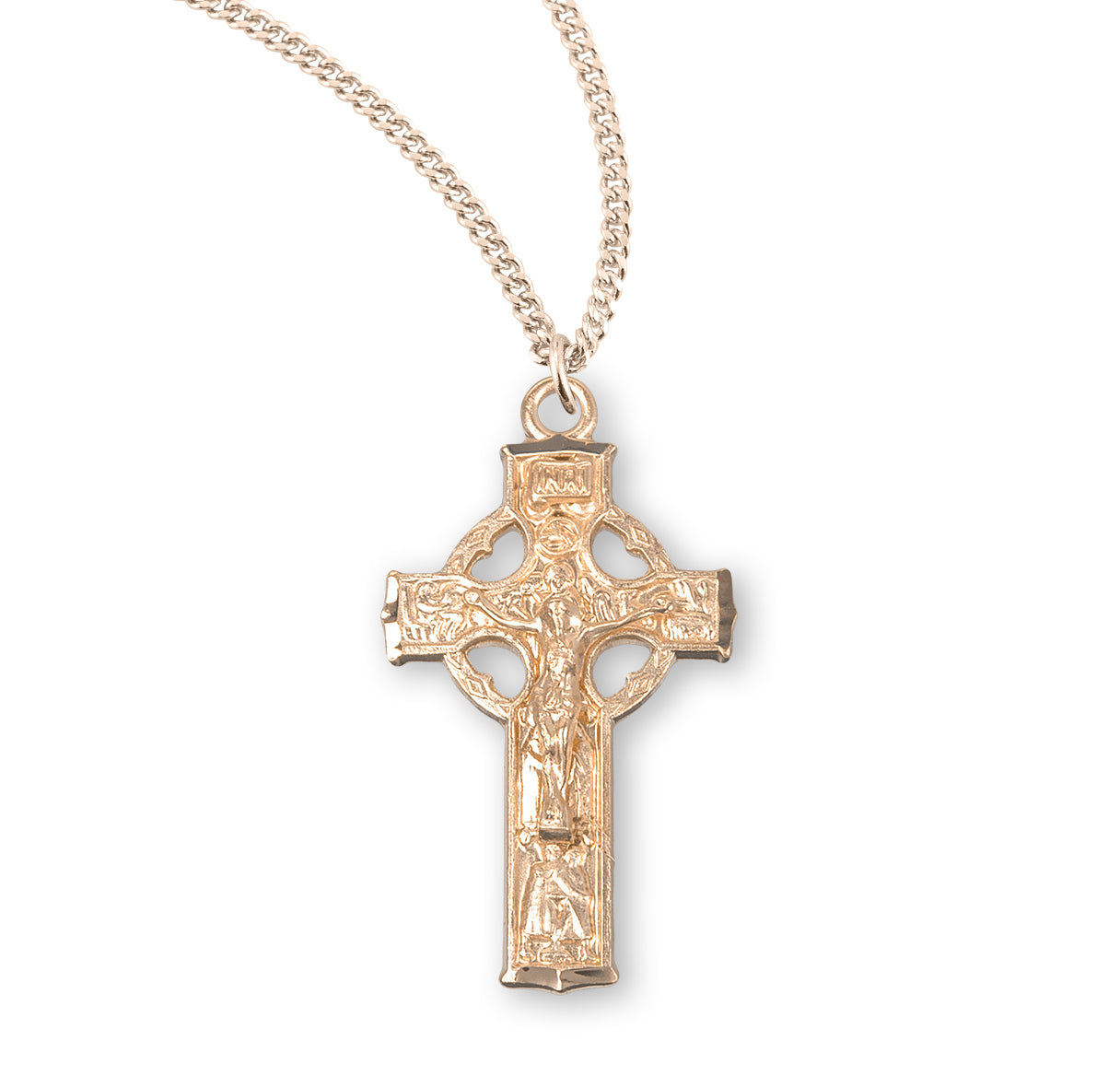 This 1.125-inch Gold Over Sterling Silver Celtic Crucifix with 18-inch Chain is made in the USA.