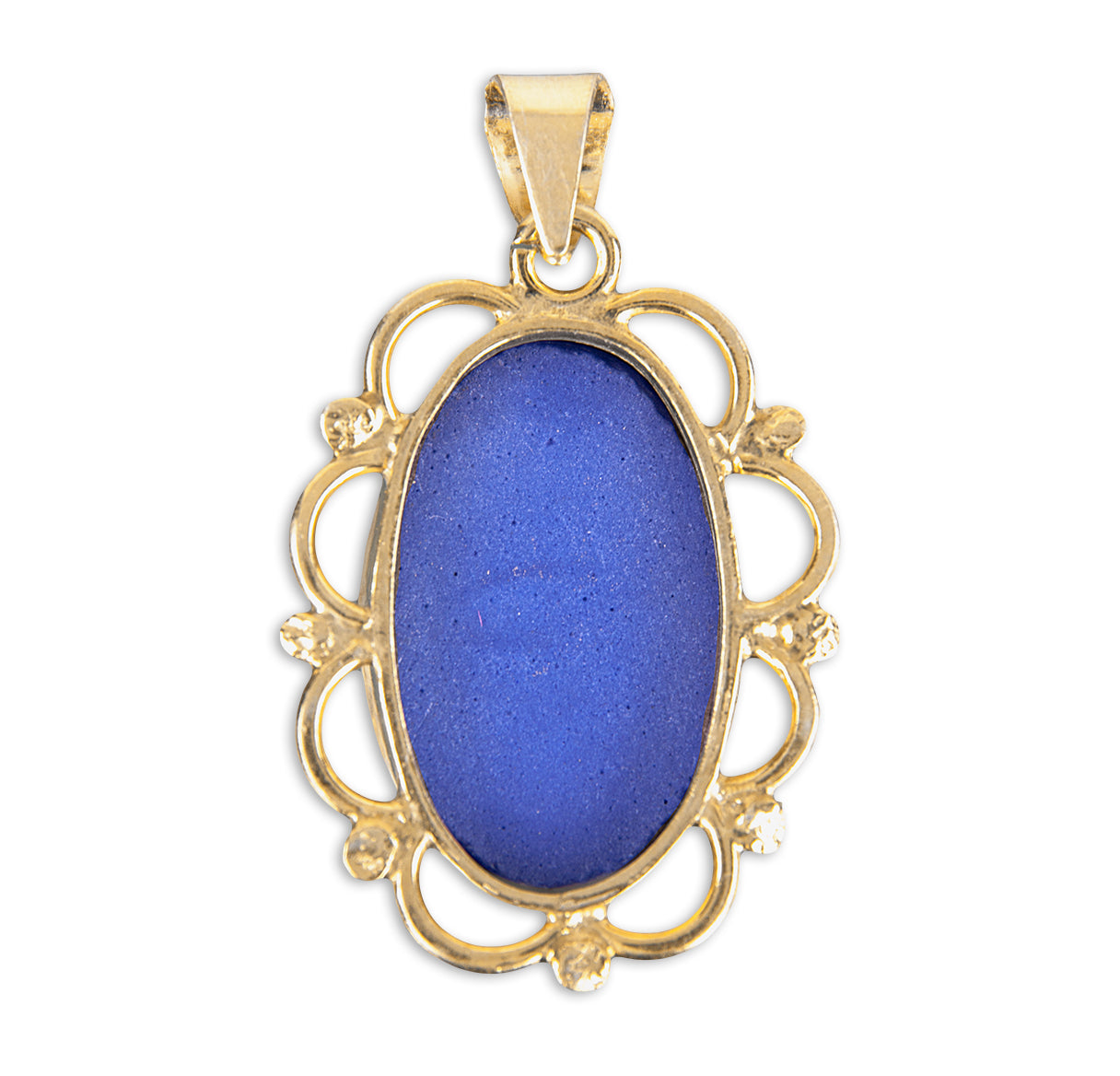 This Gold Over Sterling Dark Blue Miraculous Cameo is made in the USA.