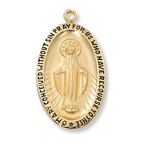 Embrace your faith with our Gold Over Silver Miraculous Medal with 24-inch Chain. This exquisite piece, crafted from gold over sterling silver, serves as a powerful reminder of the love and protection of the Blessed Virgin Mary. The Miraculous Medal, first revealed to St. Catherine Labouré in 1830, symbolizes grace, healing, and divine intercession, making it a cherished token for personal devotion or a thoughtful gift for loved ones.