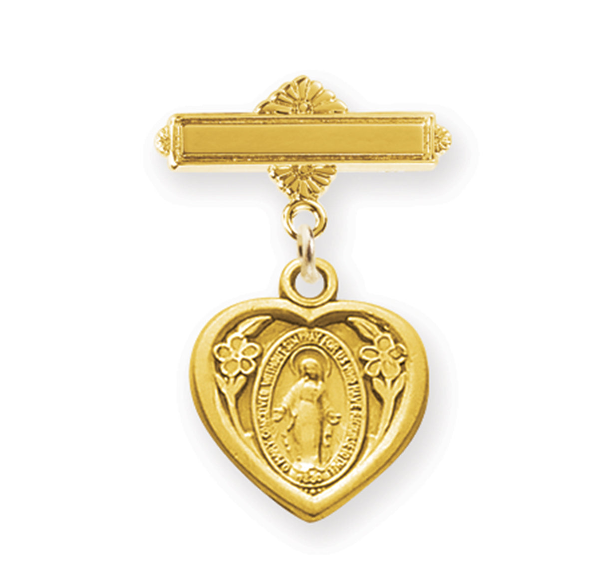 This Gold over Sterling Baby Miraculous Pin is made in the USA.