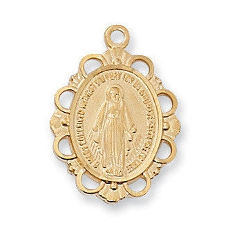 Gold Over Pewter Miraculous with 18" Gold Plated Brass Chain in gift box
