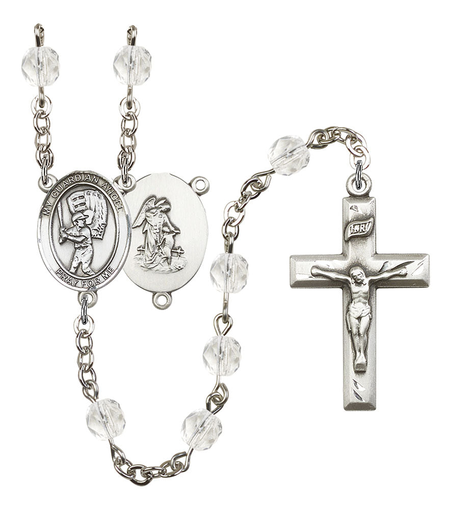 Guardian Angel and Baseball Rosary with Crystal Beads