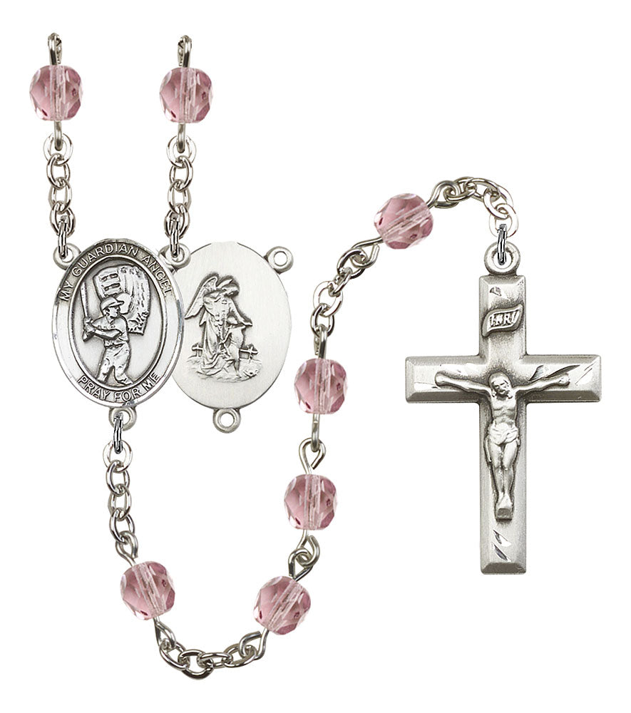 Guardian Angel and Baseball Rosary with Light Amethyst Beads