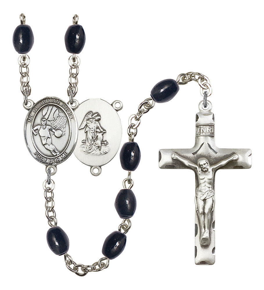 Guardian Angel and Basketball Rosary with 8X6mm Black Onyx Beads