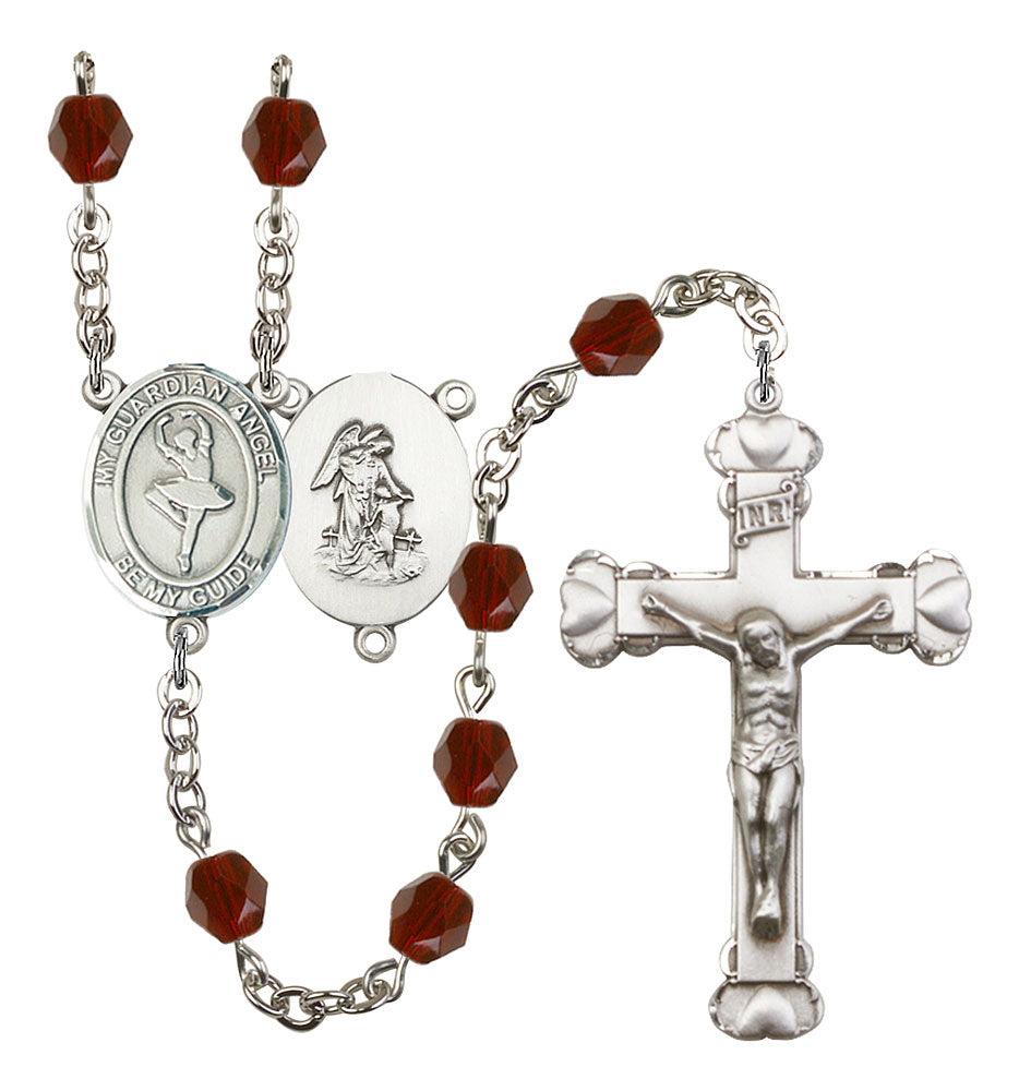 Guardian Angel and Dance Rosary with Garnet Beads
