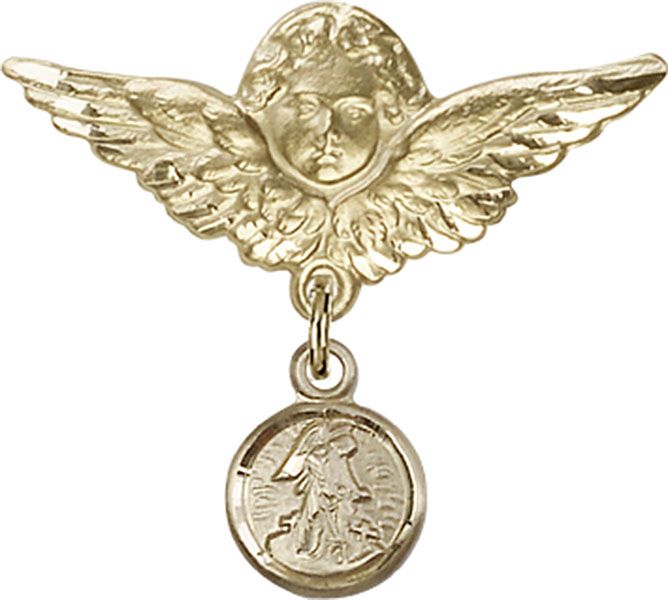 14kt Gold Baby Badge with Guardian Angel Charm and Large Angel w/Wings Badge Pin
