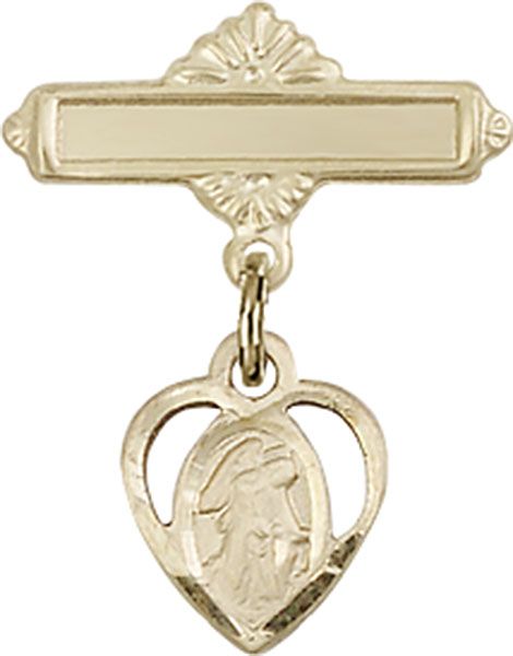 14kt Gold Baby Badge with Heart / Guardian Angel Charm and Polished Badge Pin
