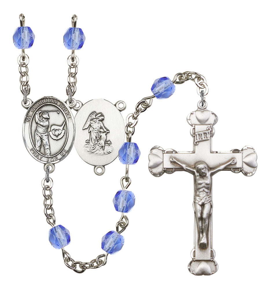 Guardian Angel and Golf Rosary with Sapphire Beads