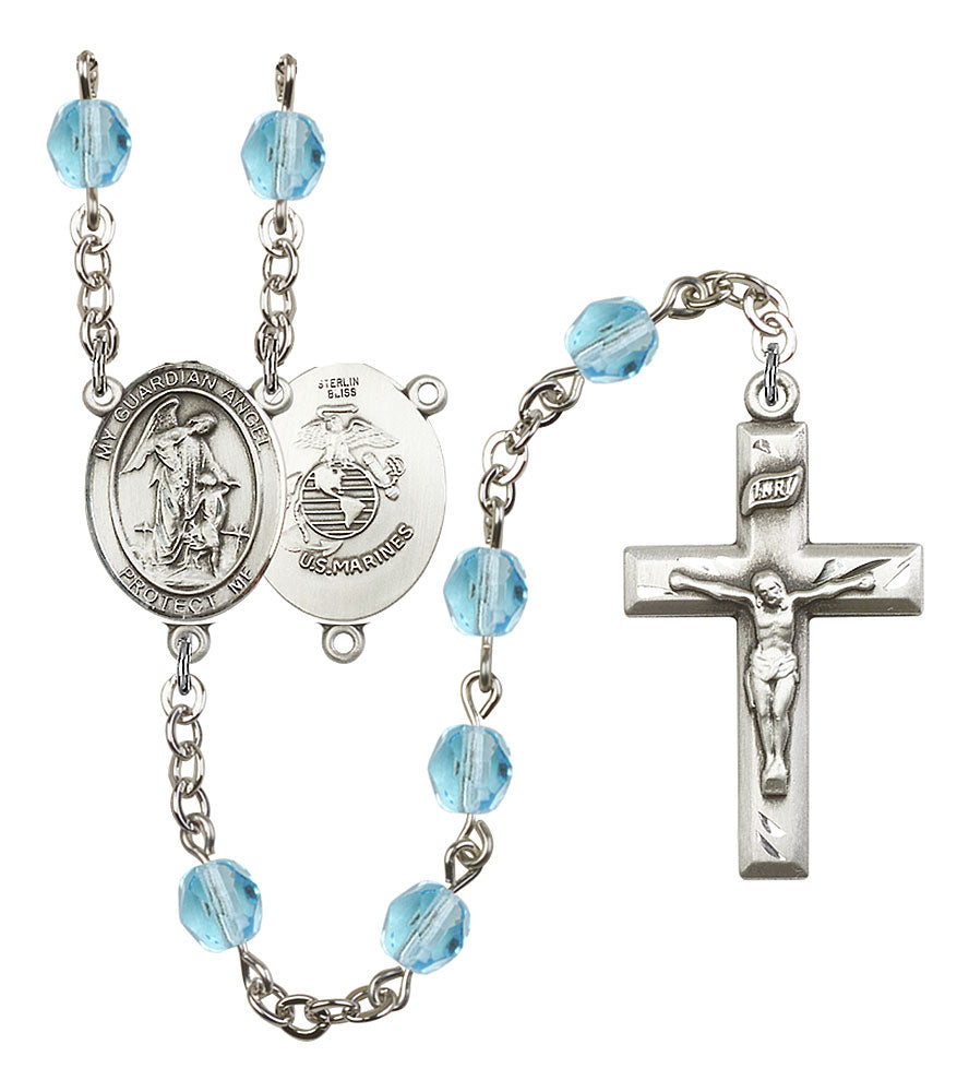 Guardian Angel and Marine Corp Rosary with Aqua Beads