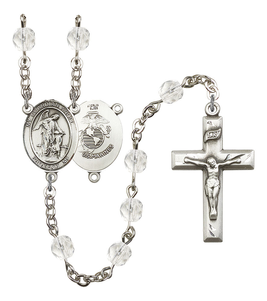 Guardian Angel and Marine Corp Rosary with Crystal Beads