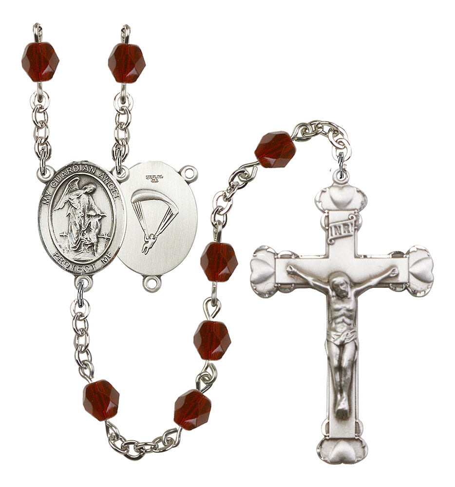 Guardian Angel and Paratrooper Rosary with Garnet Beads