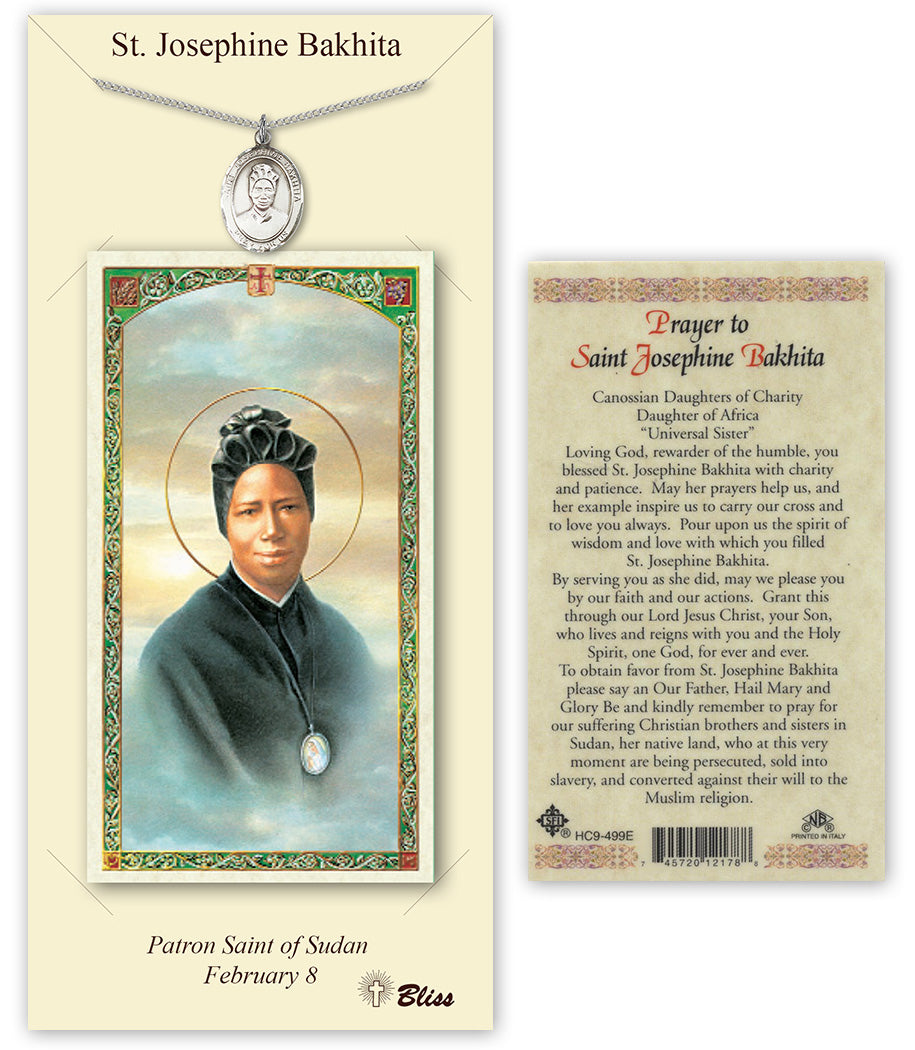 Pewter St. Josephine Bakhita Medal | 18-inch Chain | Prayer to St. Josephine Bakhita Prayer Card | Engravable