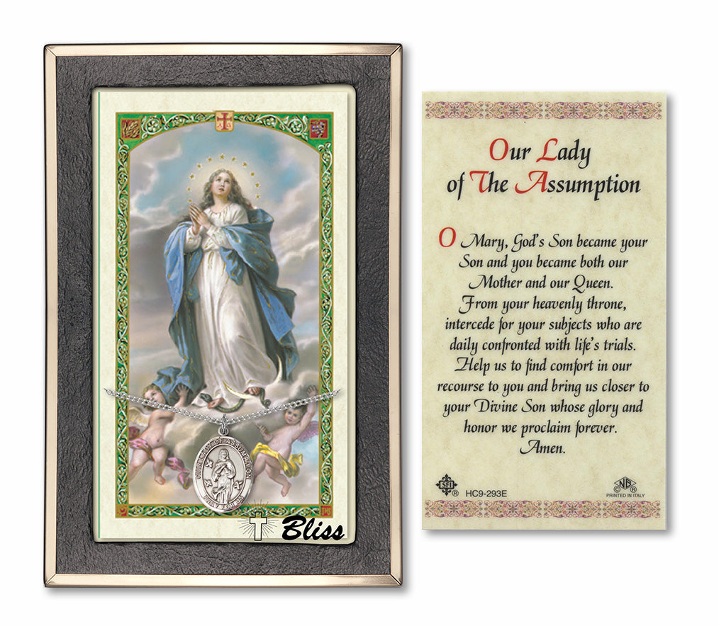 The medium-sized Our Lady of Assumption Medal with Prayer Card will arrive in a deluxe jewelry box, ready to wear or give as a gift.
