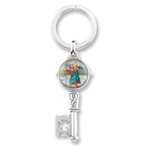 St Christopher Antique Silver Key with Enamel Image 3-Pack