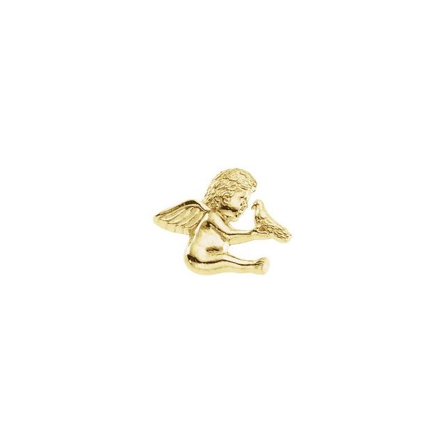 This 14 Karat Yellow Gold Angel with Holy Spirit Lapel Pin measures 10 x 12 mm, roughly equivalent to 3/8 by 1/2-inch.
