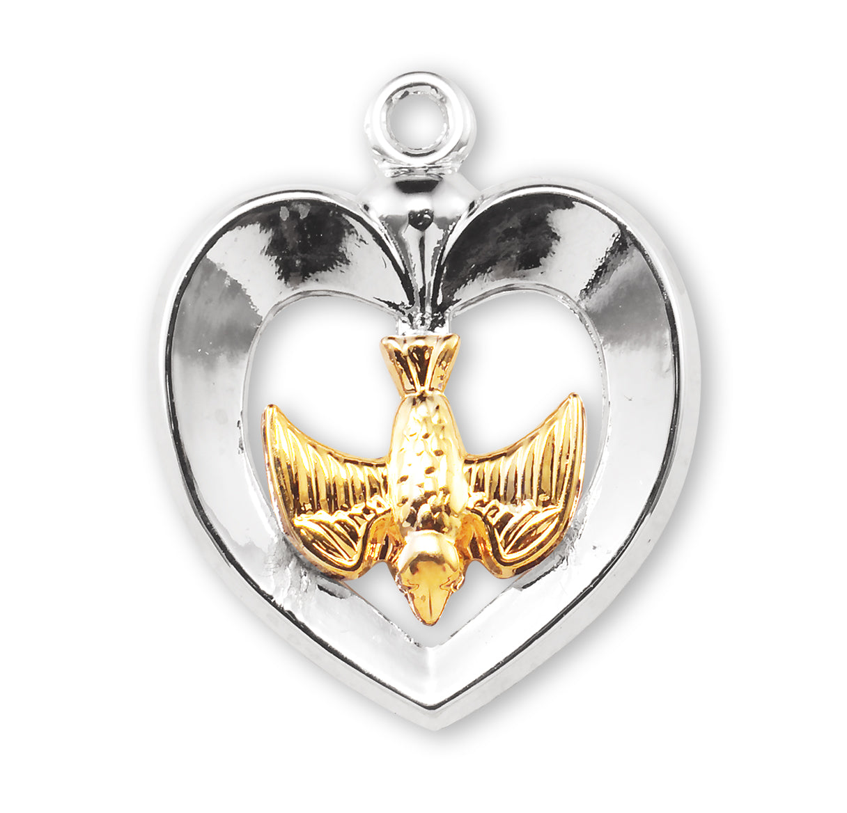 3/4-inch Sterling Silver Heart with Holy Spirit 18-inch Chain