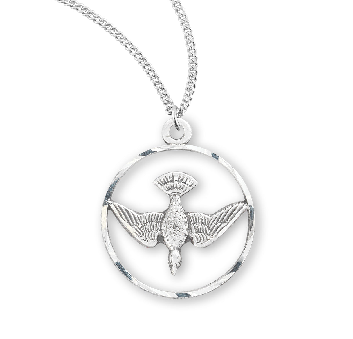 7/8-inch Sterling Silver Holy Spirit Medal with 18-inch Chain.