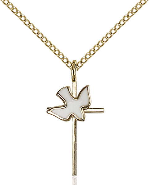 3/4 x 3/8-inch Gold-Filled (14K) Cross / Holy Spirit Medal, expertly crafted in the USA for a lifetime of use.