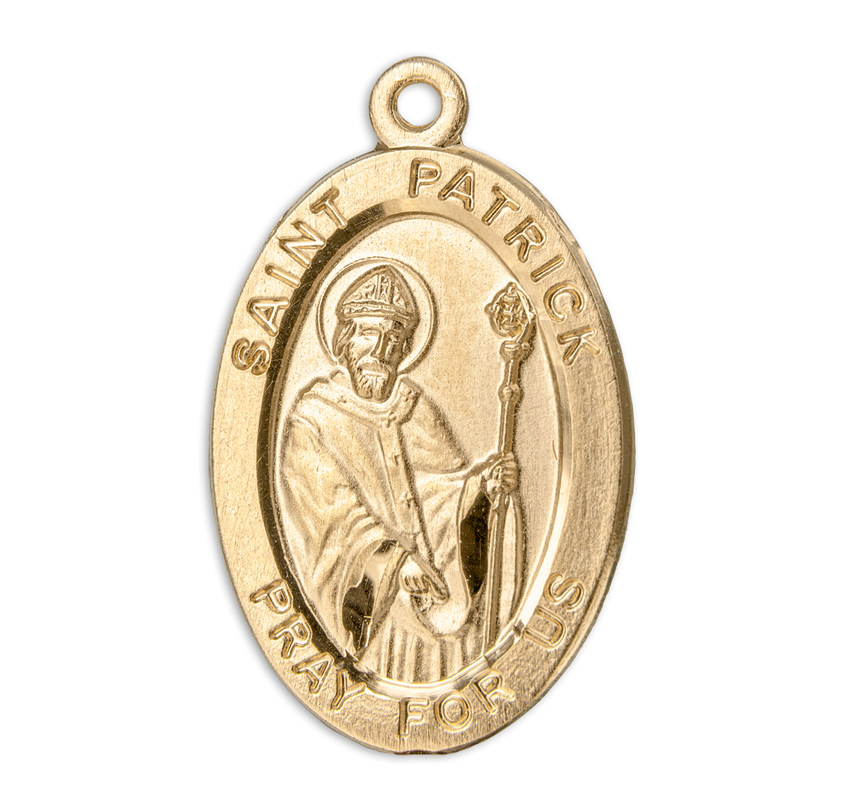 7/8-inch Oval Gold Over Sterling Silver St. Patrick Medal with 20-inch Chain. It comes in a deluxe gift box.