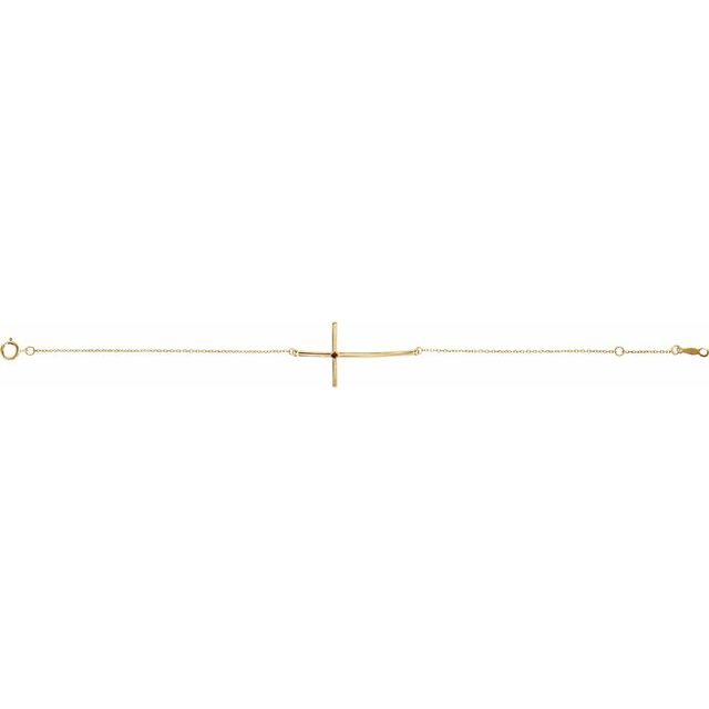 14K Gold Mozambique Garnet Sideways Cross Bracelet
