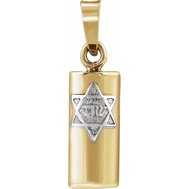 14K Yellow Gold/White Two Tone Mezuzah Pendant