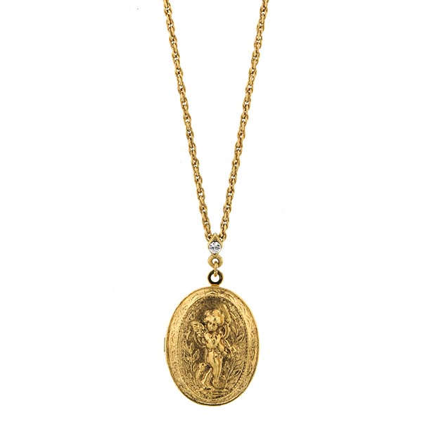 14K Gold-Dipped Oval Angel Locket Necklace - SALE