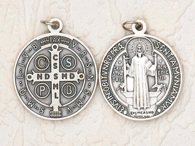 Embrace the power of faith with our 1-1/2 Inch ST Benedict Medium Oxidized Pendant. This beautifully crafted pendant serves as a daily reminder of St. Benedict's protection against evil and his call to holiness. Made from high-quality oxidized metal, it is both durable and affordable, making it an ideal accessory for anyone seeking spiritual strength.