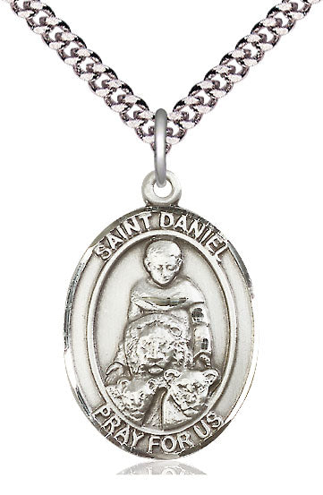 Our Pewter Saint Daniel Pendant on an 24-inch Light Rhodium Heavy Curb Chain is proudly manufactured in the USA.