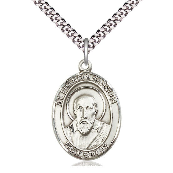 Pewter St. Francis de Sales Medal with 24-inch Chain | Engravable