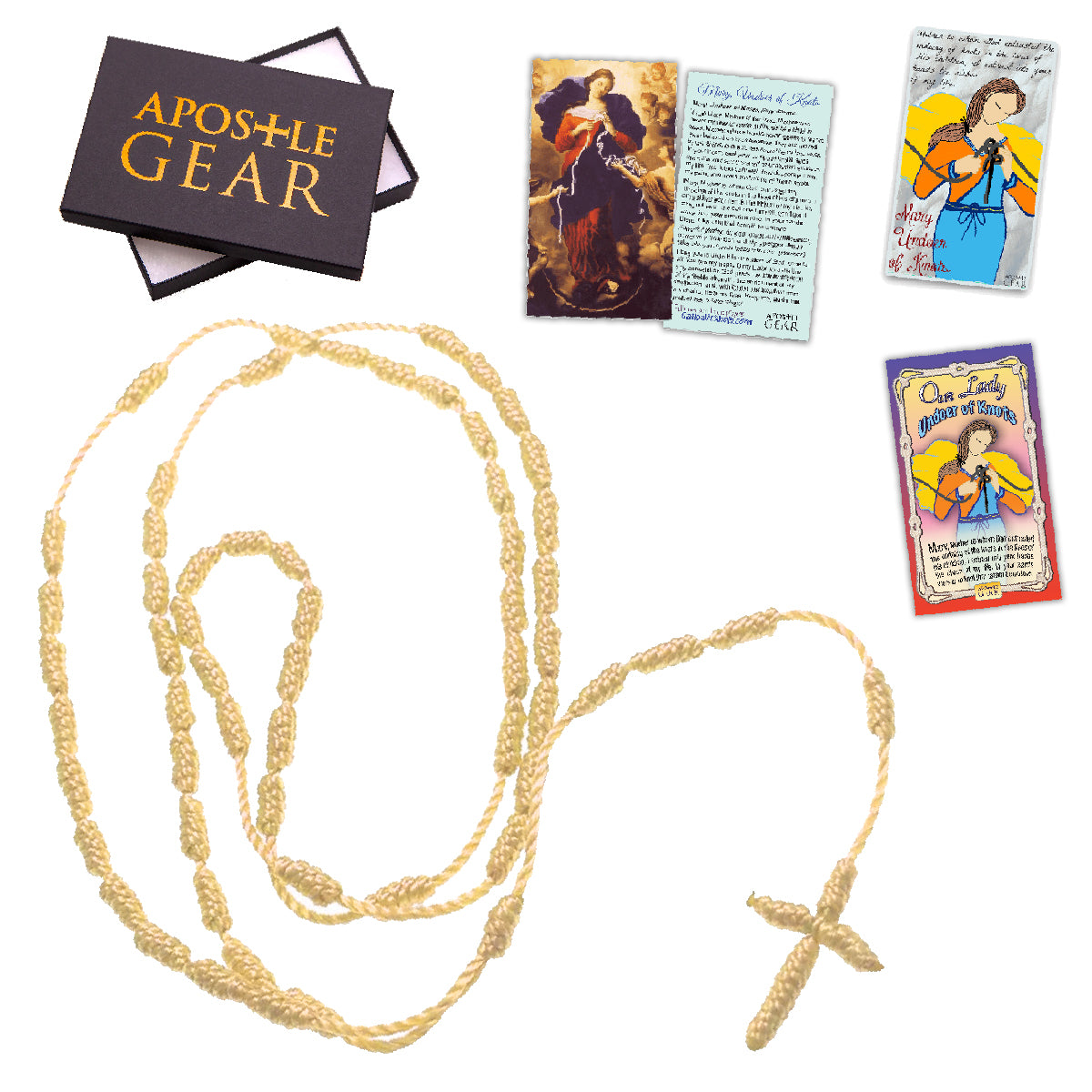 Our beautiful Our Lady Undoer of Knots Handmade Knotted Cord Rosary from Apostle Gear is not only unique but it's also virtually indestructable and lightweight for easy carrying.