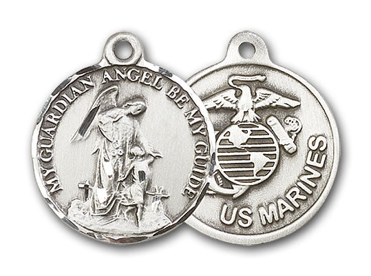 7/8 x 3/4-inch Sterling Silver Guardain Angel / Marines Medal.