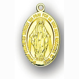 7/8-inch Solid 14kt. Gold Miraculous Medal with 14kt. Jump Ring. It comes in a deluxe gift box.