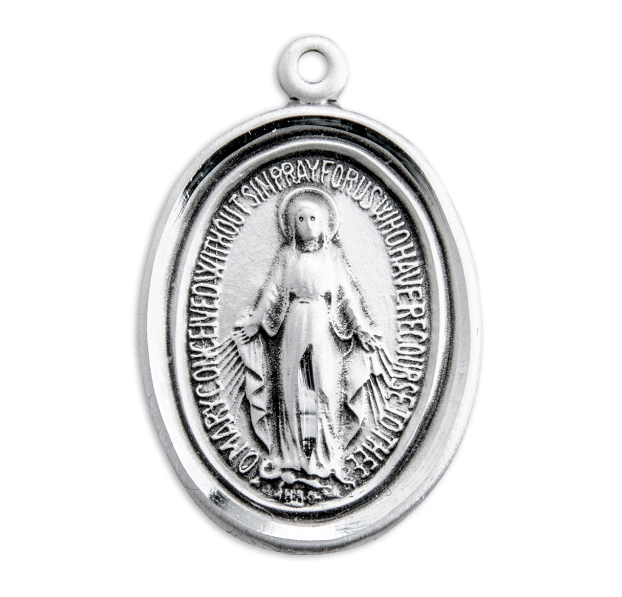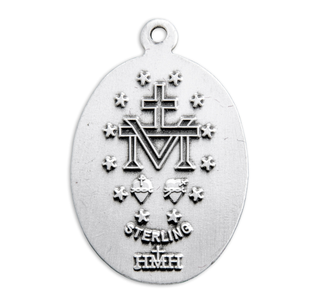 7/8-inch Sterling Silver Oval Miraculous Medal with 18-inch Chain.