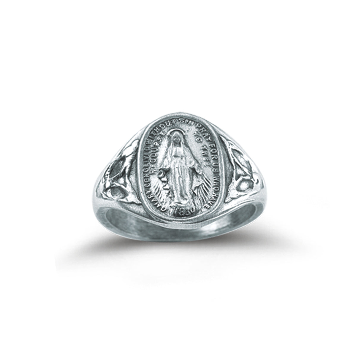 This Sterling Silver Miraculous Medal Ring Size 7 is made in the USA.