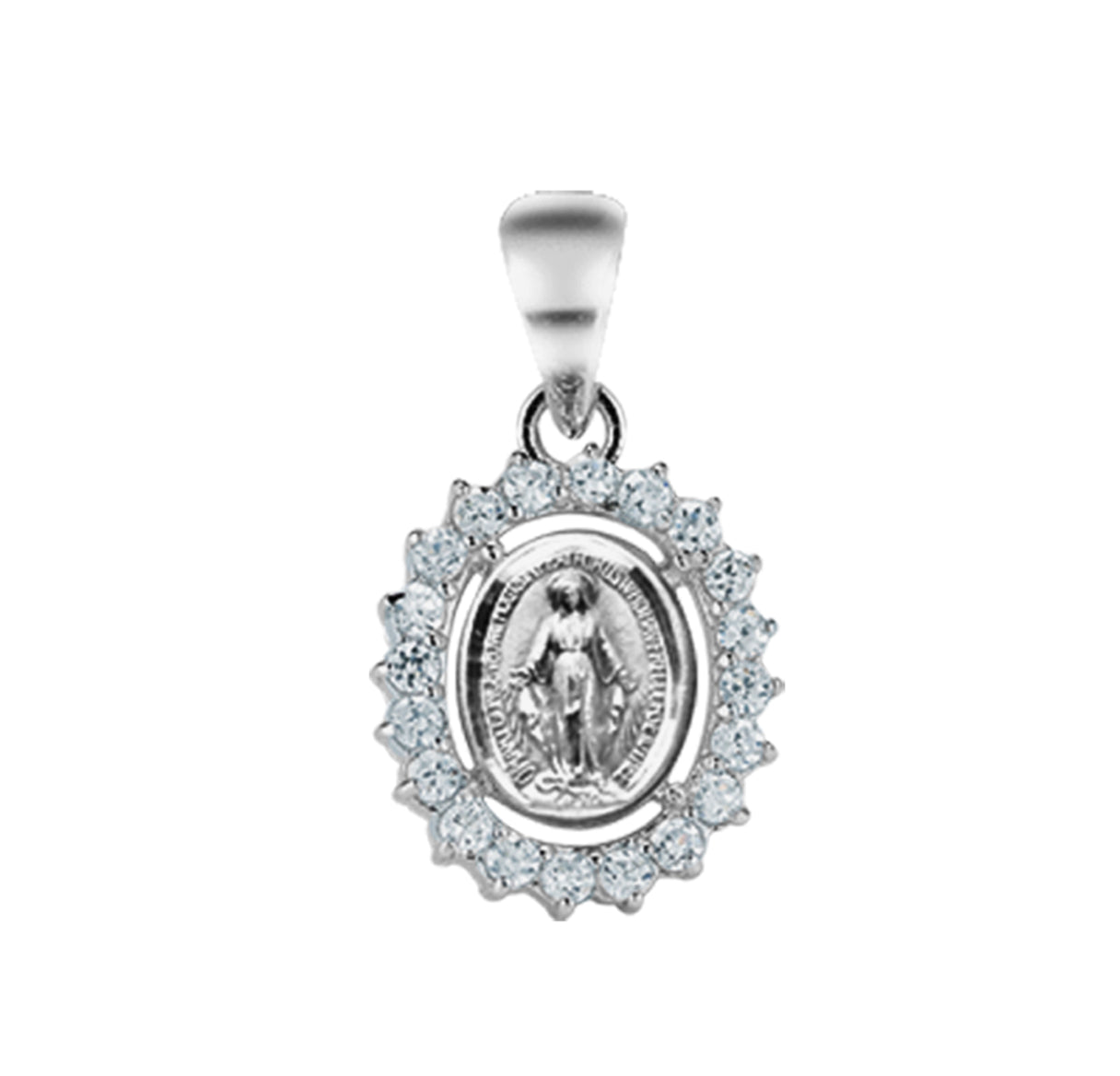 Sterling Silver Miraculous Medal with Cubic Set Zircons