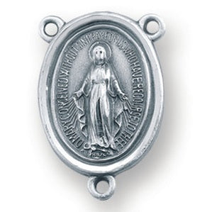 Enhance your prayer experience with our Sterling Silver Miraculous Rosary Center . At 7/8-inch , this exquisite centerpiece is crafted from high-quality sterling silver , weighing just 3.2 grams , and comes beautifully carded for easy gifting or personal use. Made in the USA, it serves as a perfect reminder of the grace and protection offered through the intercession of the Blessed Virgin Mary.