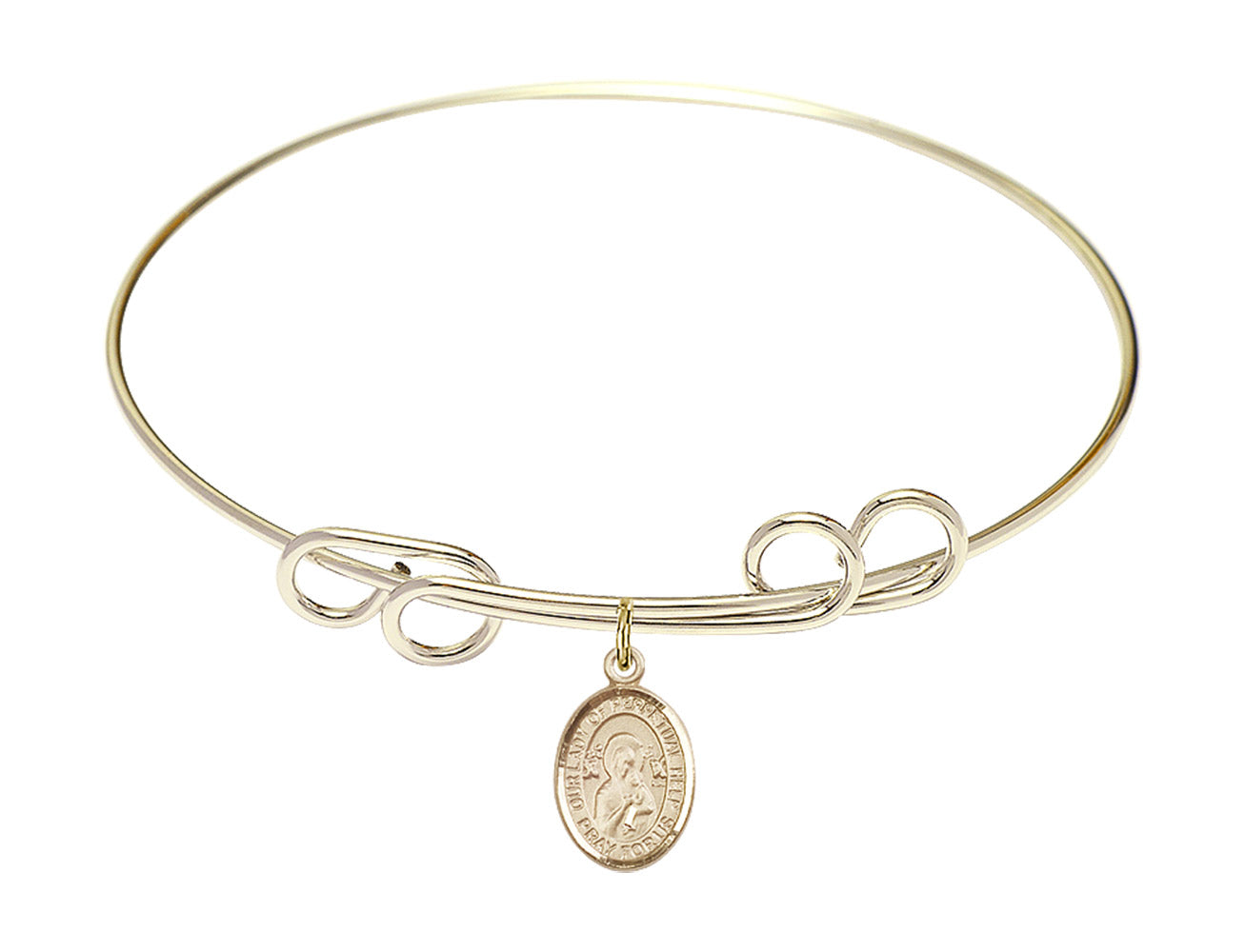 8-inch Double Loop Bangle Bracelet | 14kt Gold Filled Our Lady of Perpetual Help Charm | Engravable