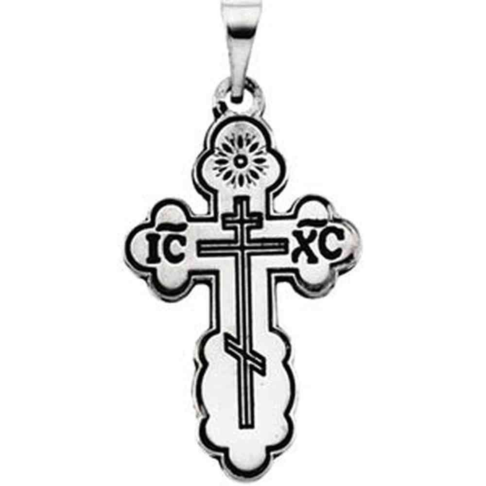 14K White Gold Die Struck Orthodox Cross