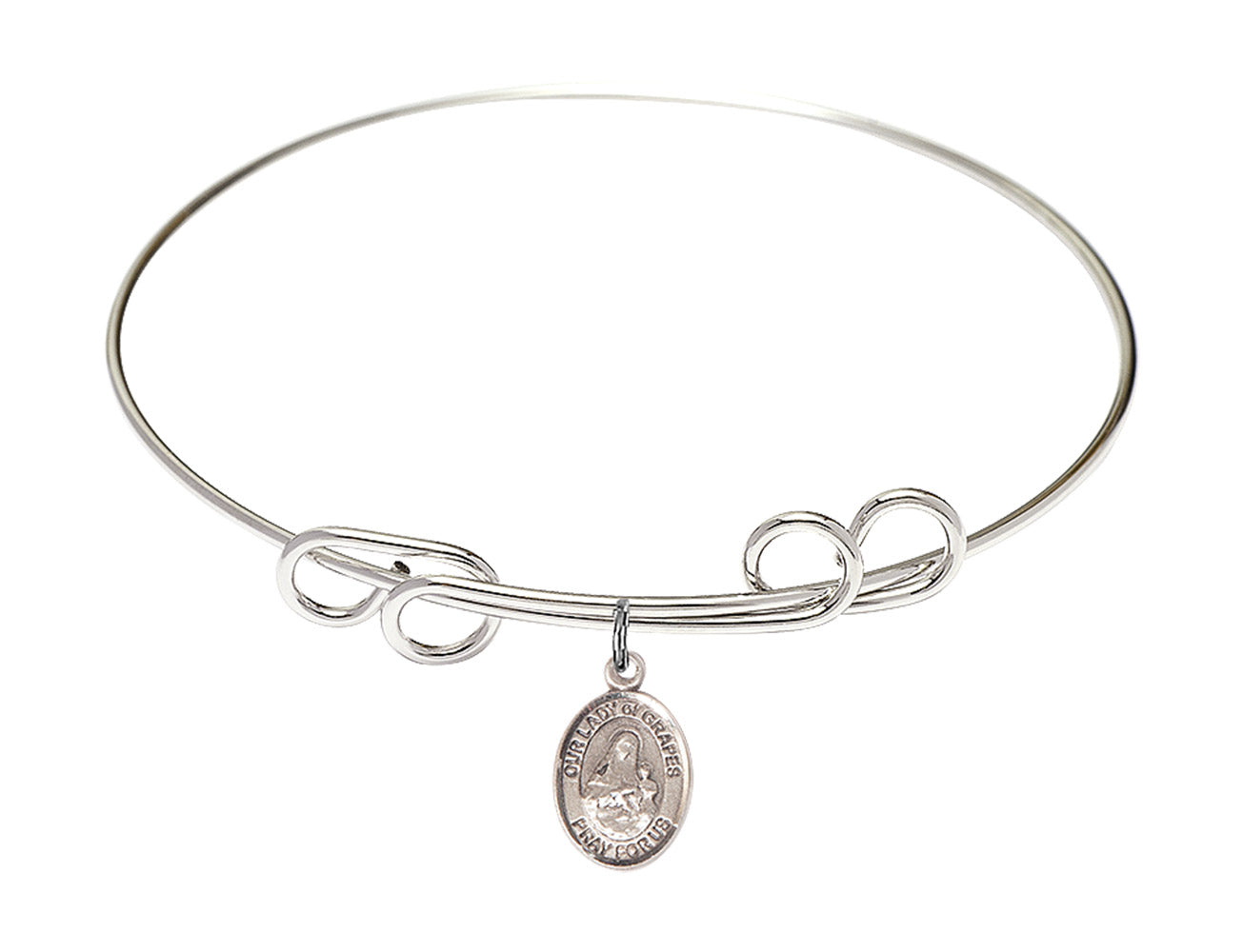 Our 8 inch Round Double Loop Rhodium Bangle Bracelet with a Sterling Silver Our Lady of Grapes charm. is proudly manufactured in the USA.