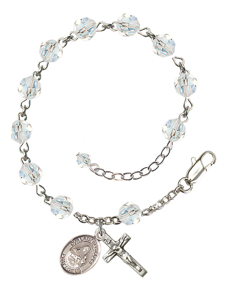 Sterling Silver 6mm Austrian Crystal Our Lady of Grapes Rosary Bracelet | Engravable
