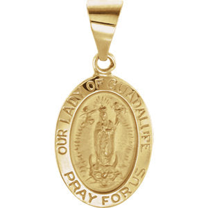 Part of our Religious Pendants line, this Hollow Our Lady of Guadalupe Medal features a weight of 0.6 Dwt, which is the equivalent of 0.93 grams.