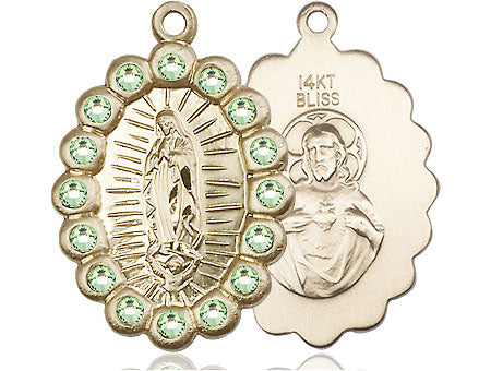 14kt Gold Our Lady of Guadalupe Medal with Peridot Swarovski stones | Medium