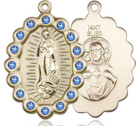14kt Gold Our Lady of Guadalupe Medal with Sapphire Swarovski stones | Large