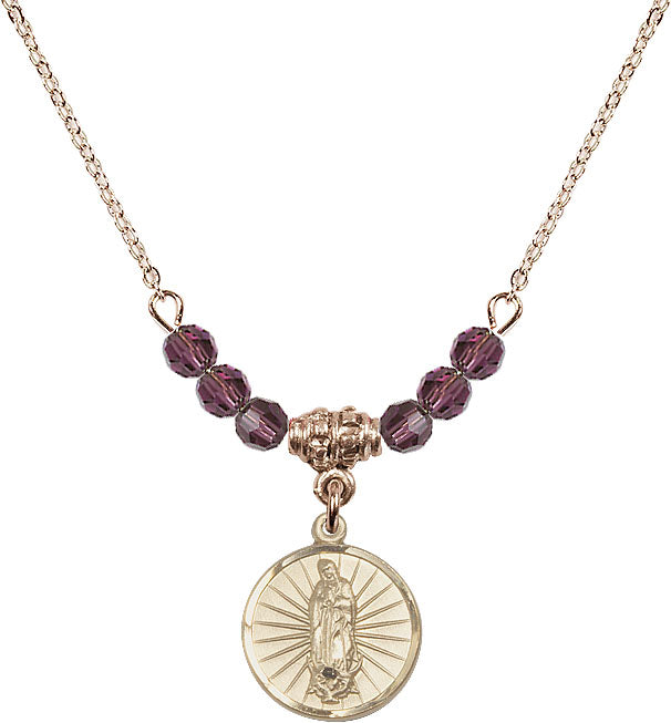 18" Plated Necklace with 4mm Amethyst Crystal Beads & 14K-Filled Our Lady of Guadalupe Medal | Engravable