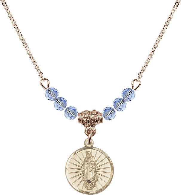 18" Plated Necklace with 4mm Light Sapphire Crystal Beads & 14K-Filled Our Lady of Guadalupe Medal | Engravable